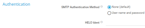 User name and password: Authenticate against the SMTP server via user name and password.